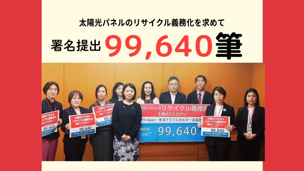 - CAN-Japan署名キャンペーン「太陽光パネルのリサイクル義務化を進めてください!」